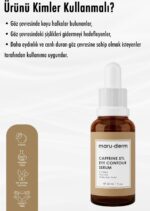 پوست دور چشم به دلیل نازکی و حساسیت بالا، سریع‌تر از سایر نواحی صورت دچار علائم پیری مانند خطوط ریز، تیرگی و افتادگی می‌شود. سرم دور چشم کافئین مارودرم، با فرمولاسیون خاص خود، به افزایش انرژی و شادابی پوست در این ناحیه کمک می‌کند. کافئین با تحریک سلول‌های پوستی، باعث افزایش تولید کلاژن و بهبود حالت ارتجاعی پوست می‌شود.