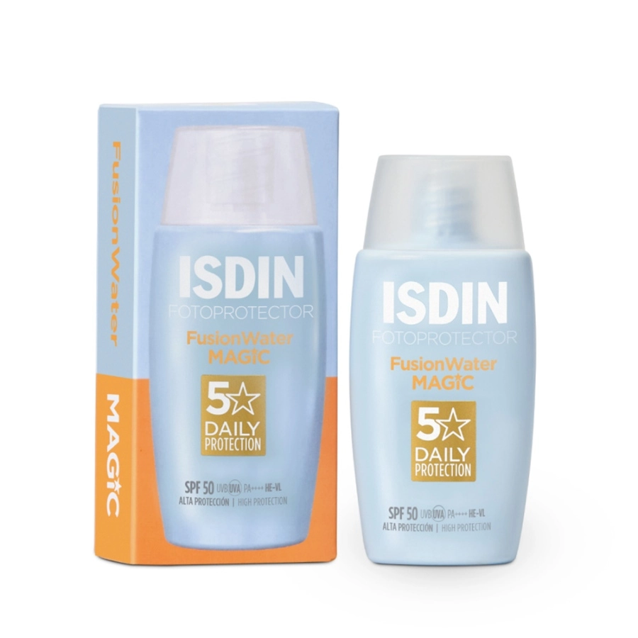 - ضدآفتاب فیوژن واتر مجیک SPF50 ایزدین یک محصول کاملا بی رنگ با جذب سریع