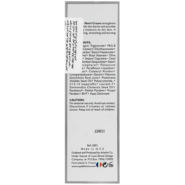 این کرم با ترکیبات مغذی و آبرسان خود، به حفظ رطوبت پوست کمک میکند و از التهاب و خشکی آن جلوگیری مینماید.